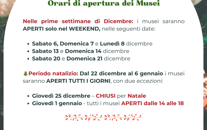 Orari dei Musei nel mese di Dicembre 2025